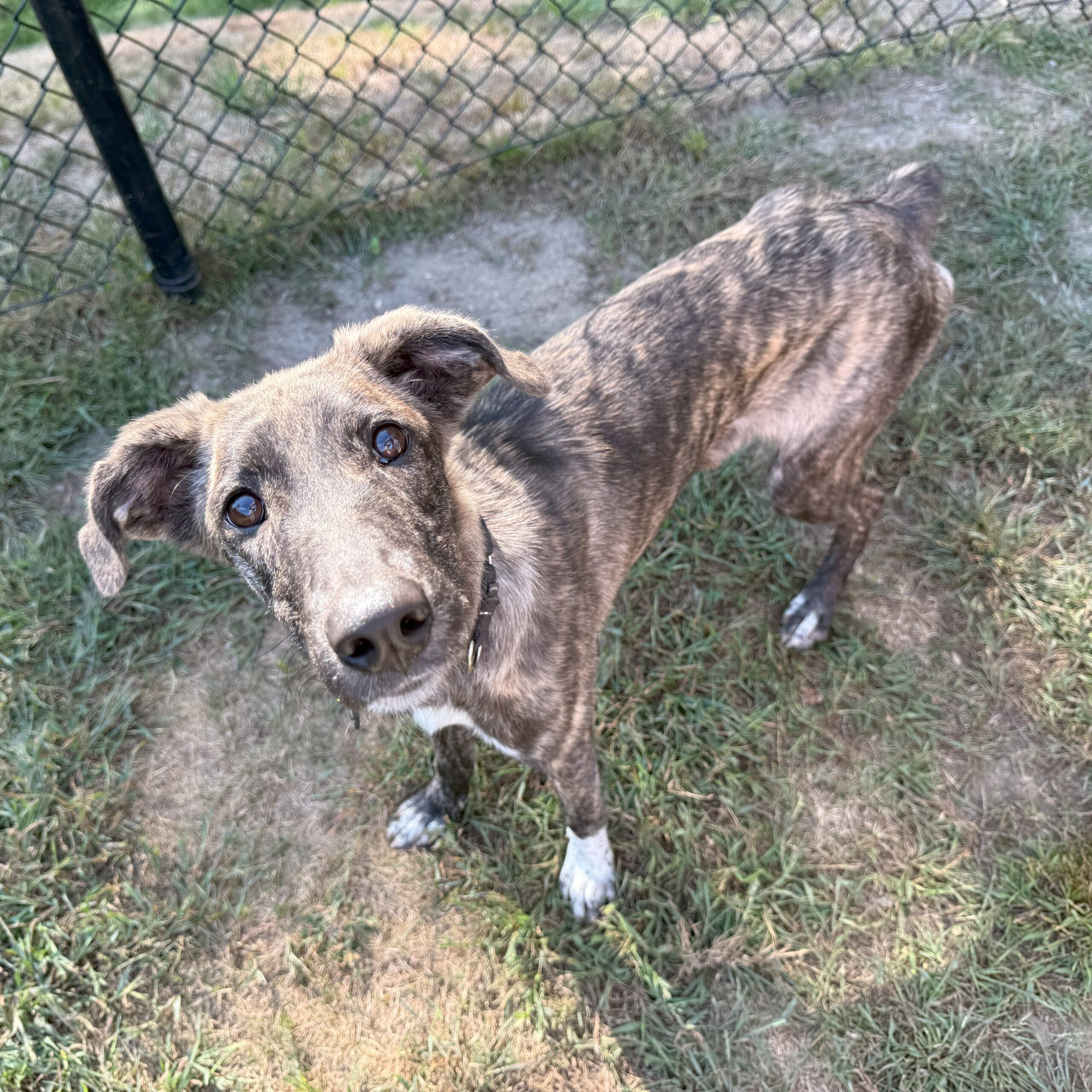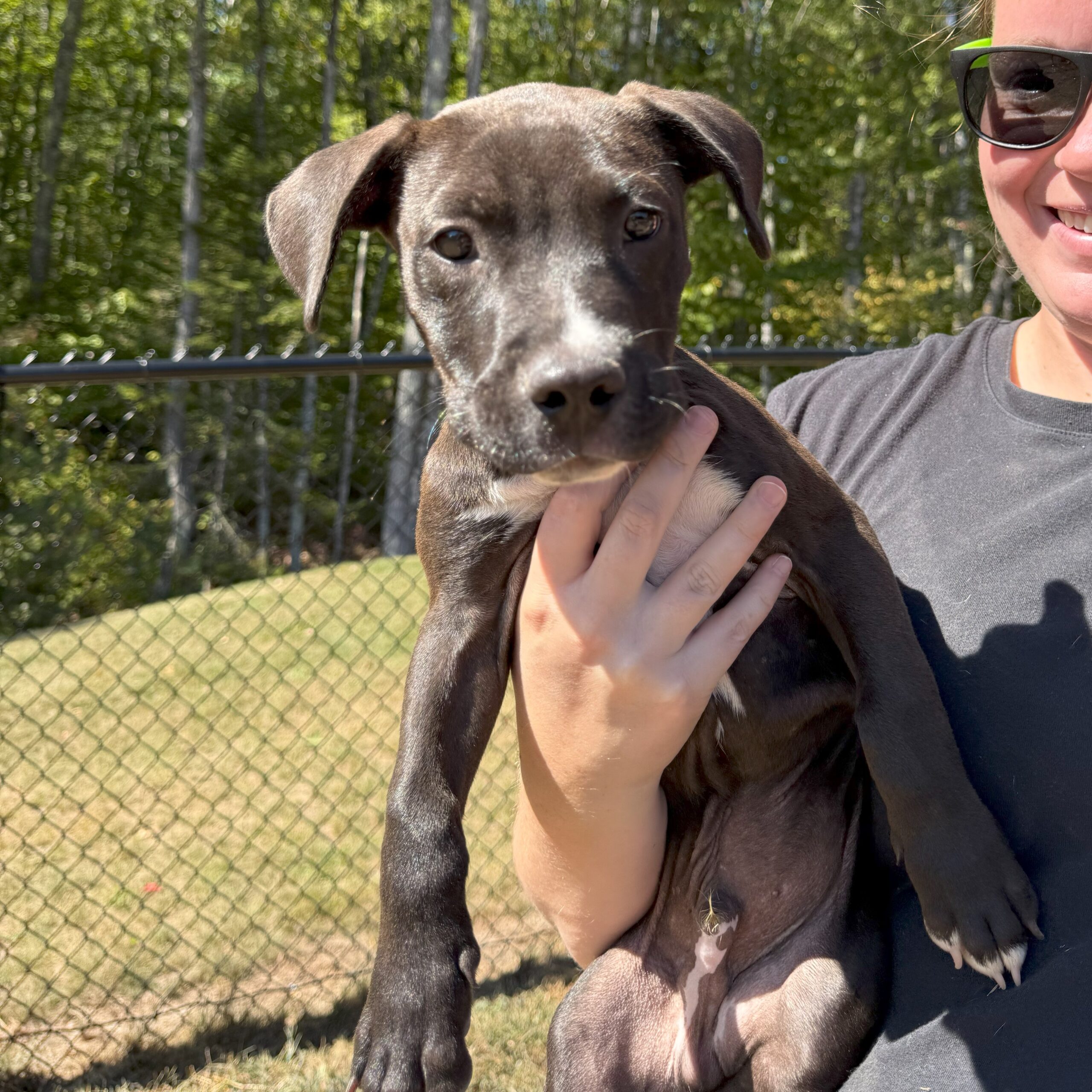 Emerson was saved in Louisiana by our friends at LaMa Animal Shelter and came to us on 9/20. She is a beautiful brindle girl that gets along with other dogs. She is playful and full of spunk, and we are so excited to welcome her to Maine and more importantly, to her new and better life!