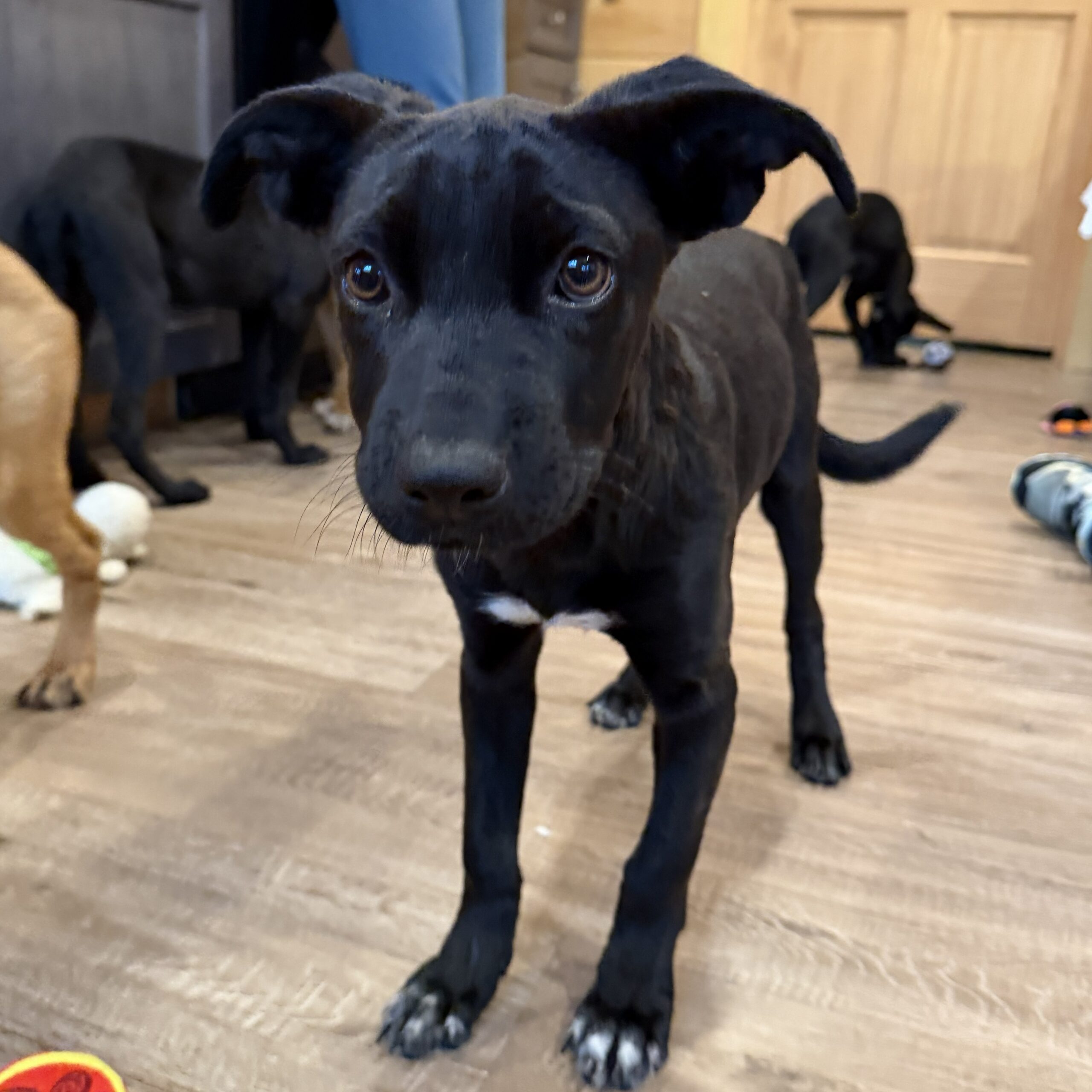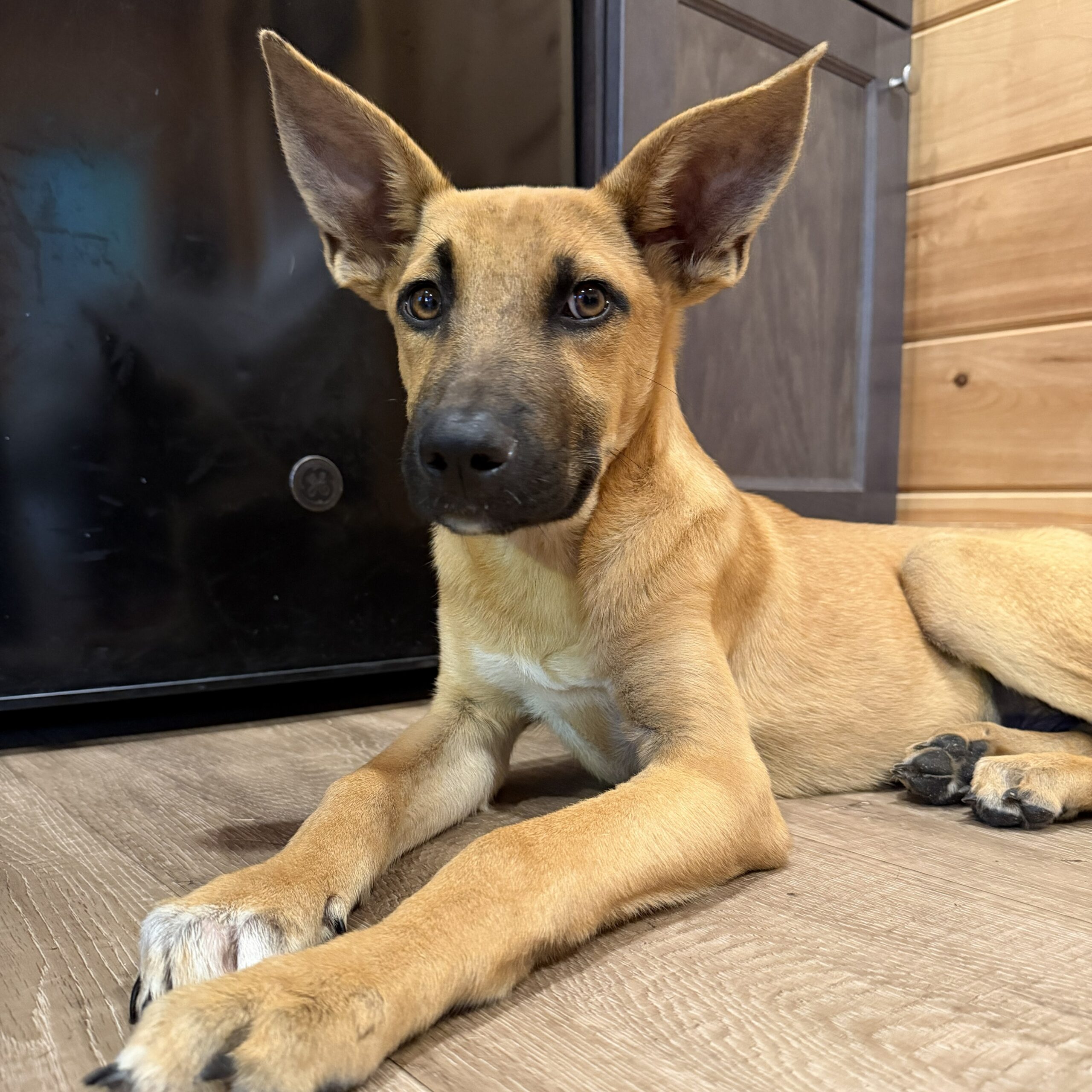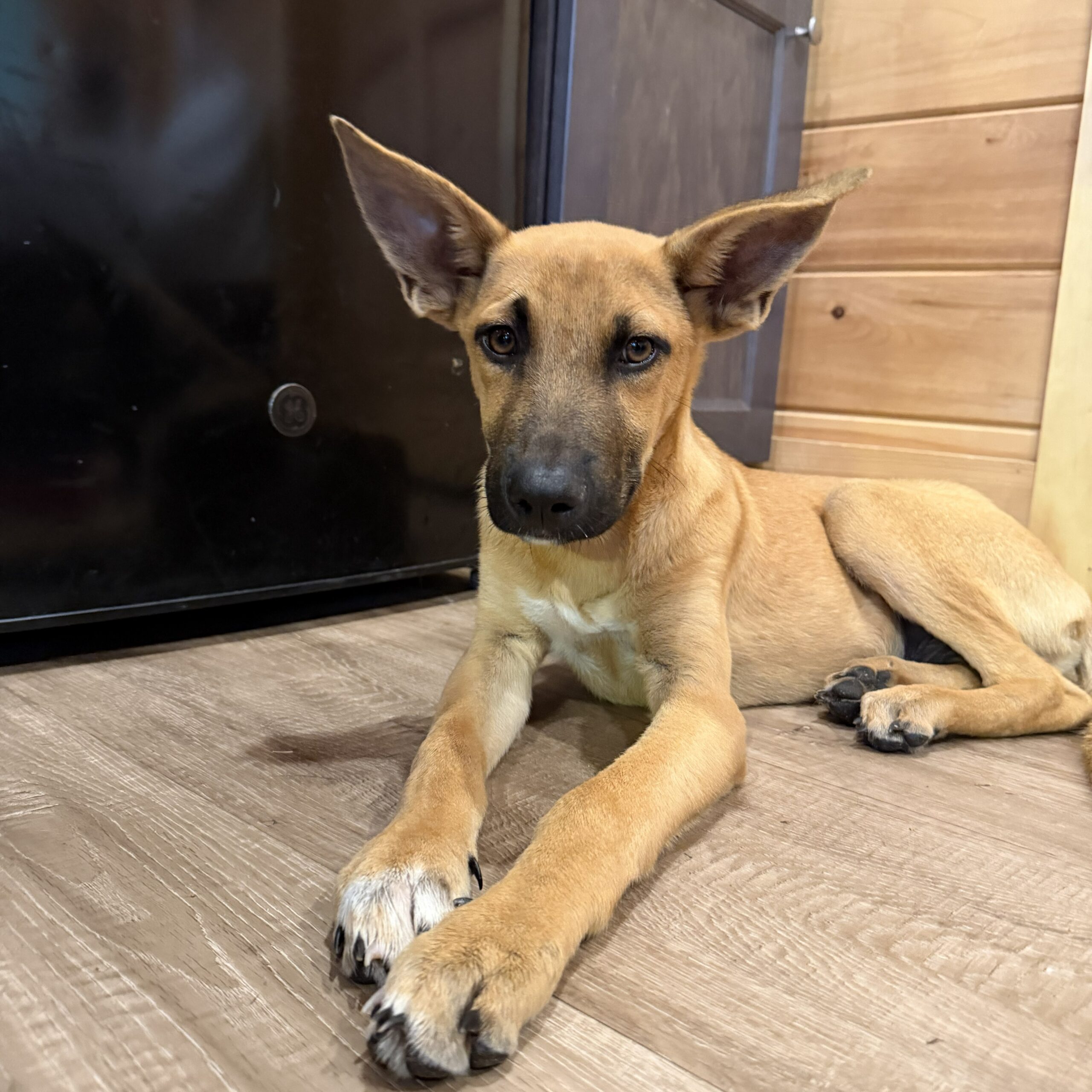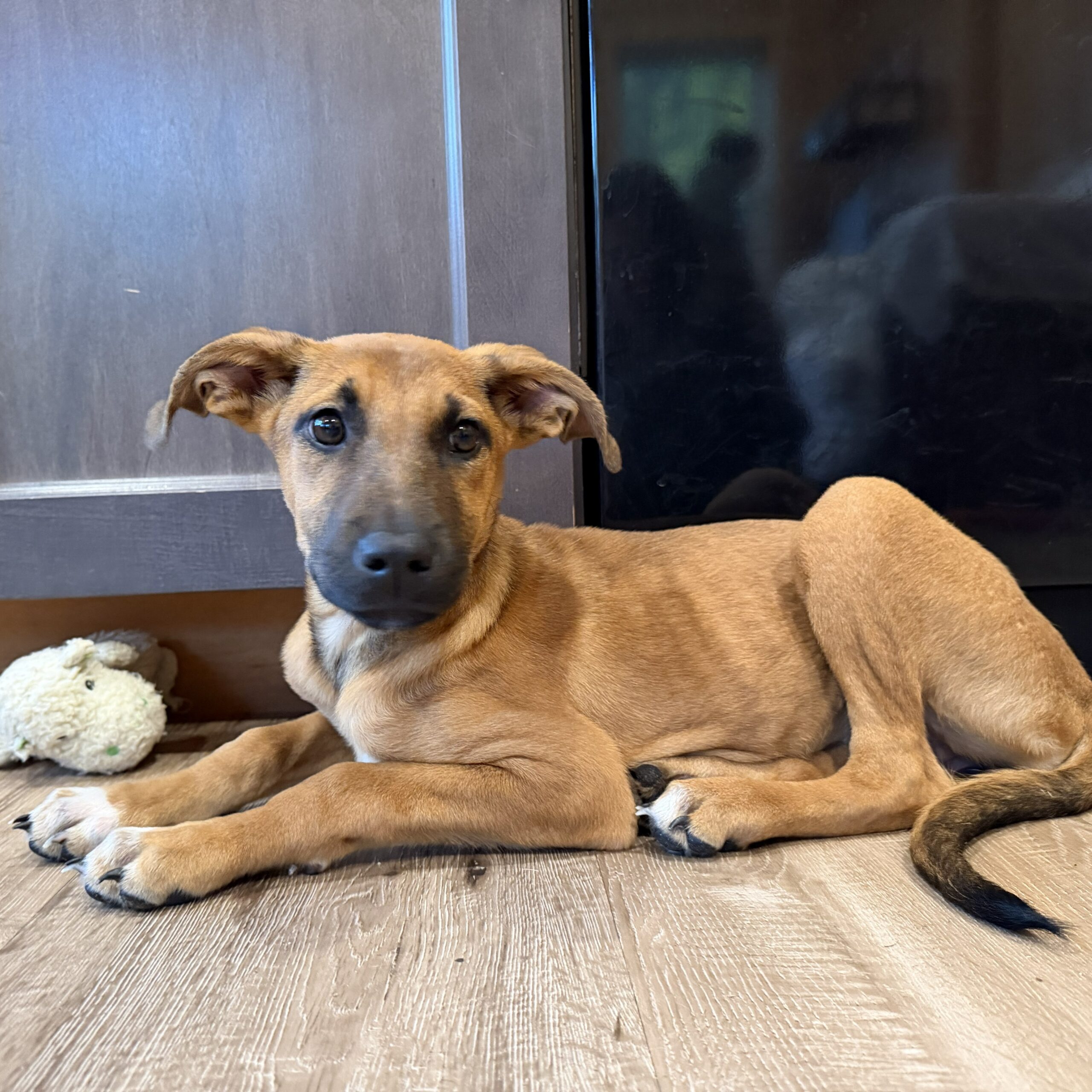 Jet arrived a short time ago from Louisiana with 5 siblings. Their mom is 100% German Shephard. Their cute floppy ears are hard to miss. They have a lot of energy and get rowdy when playing with each other.
