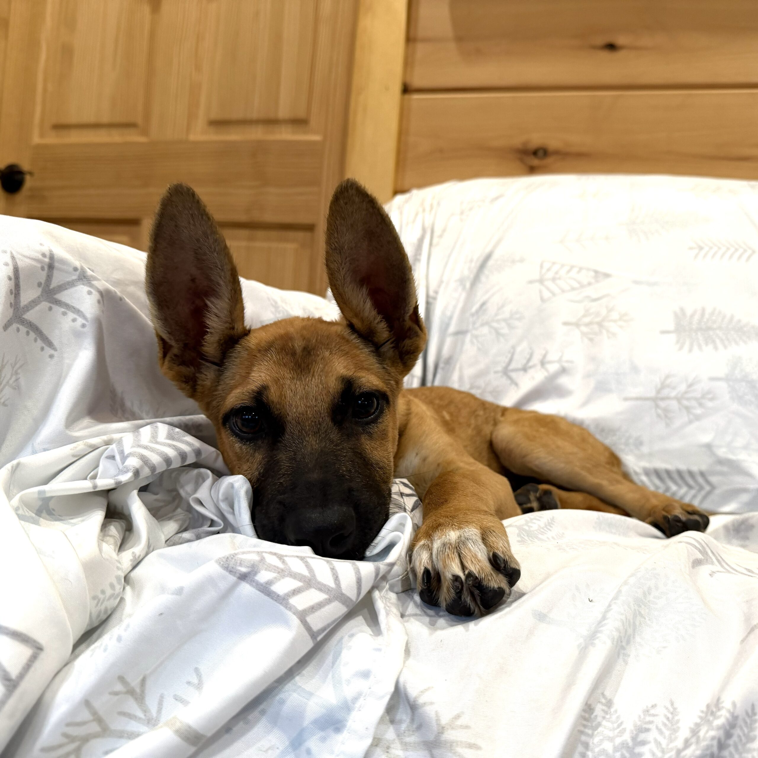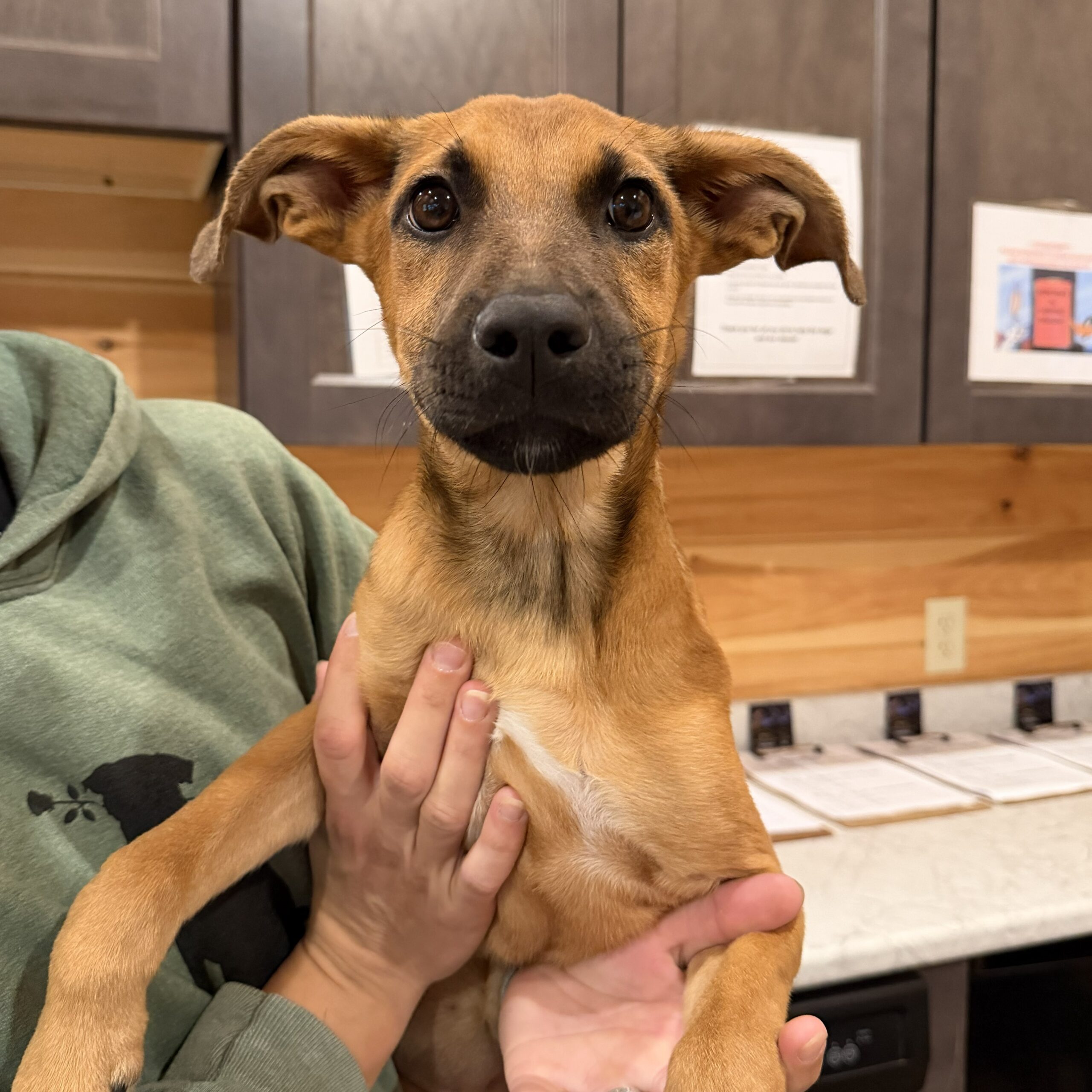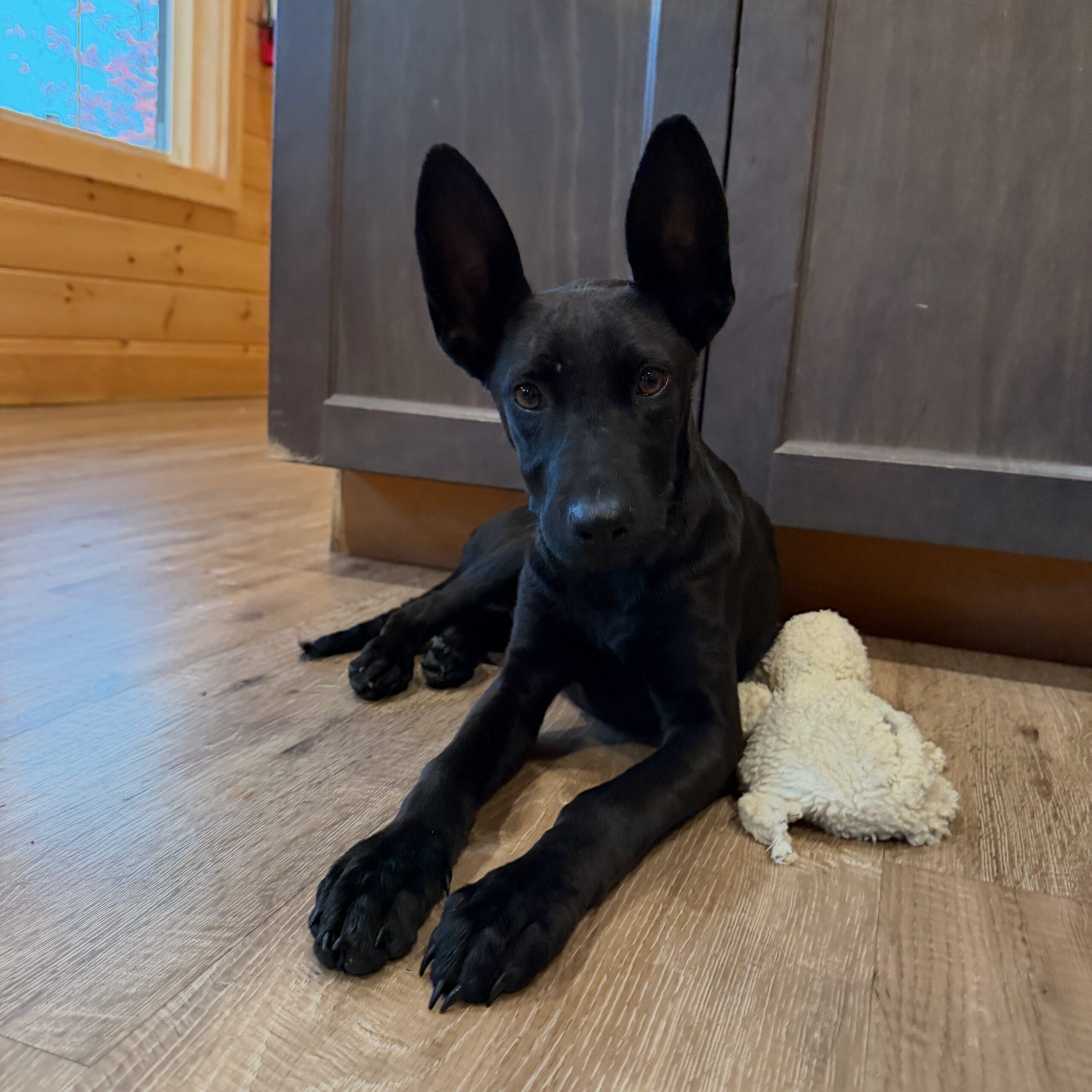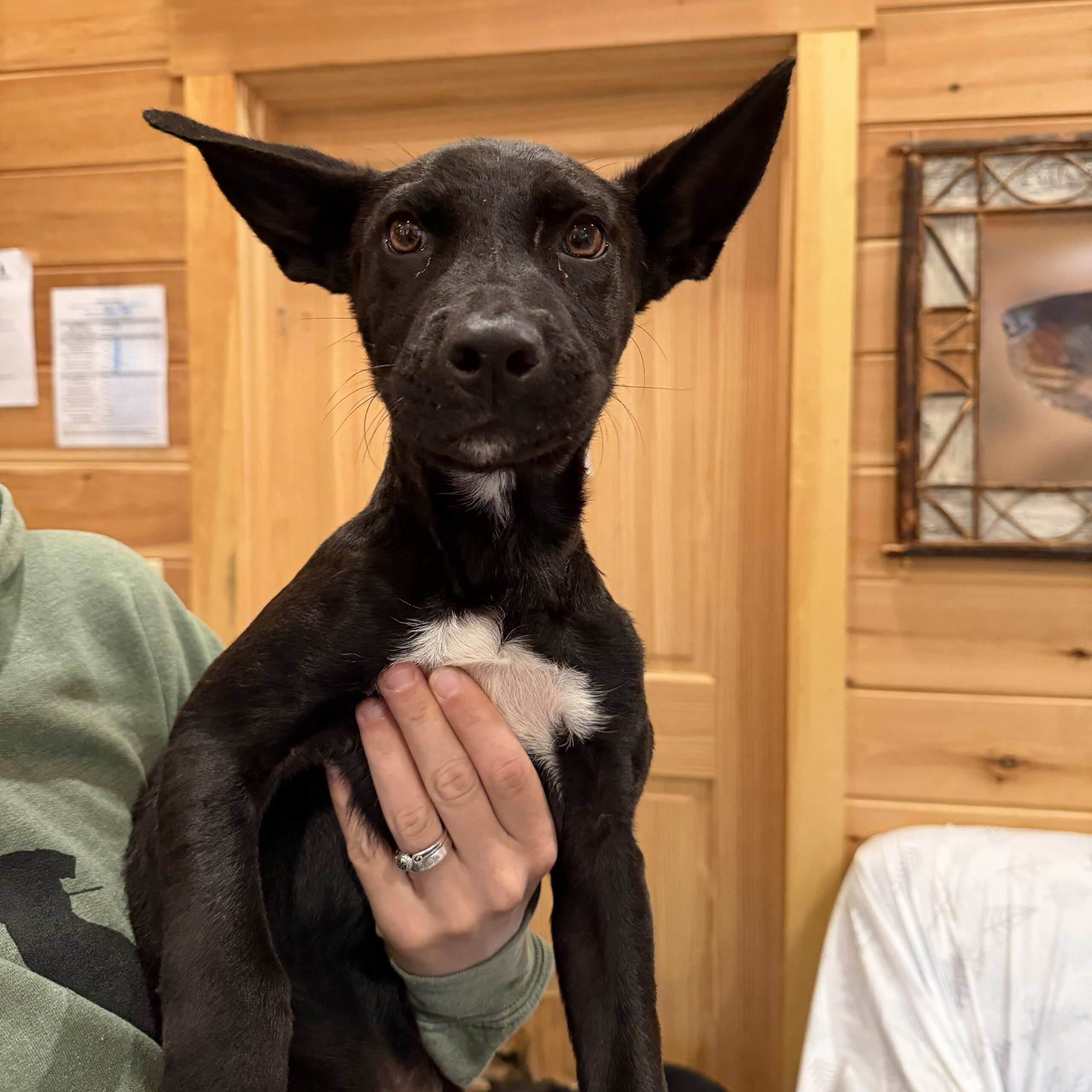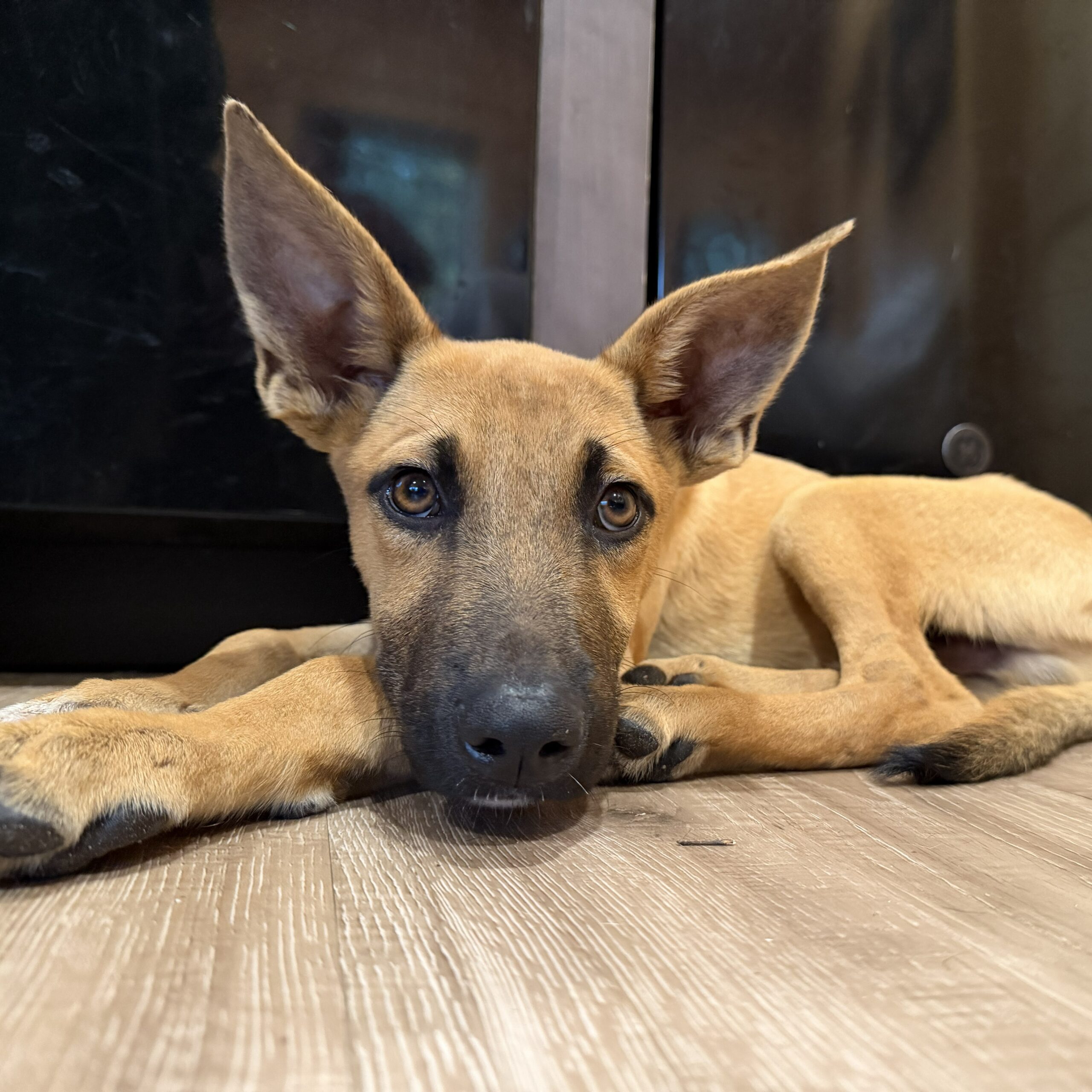 Jet arrived a short time ago from Louisiana with 5 siblings. Their mom is 100% German Shephard. Their cute floppy ears are hard to miss. They have a lot of energy and get rowdy when playing with each other.