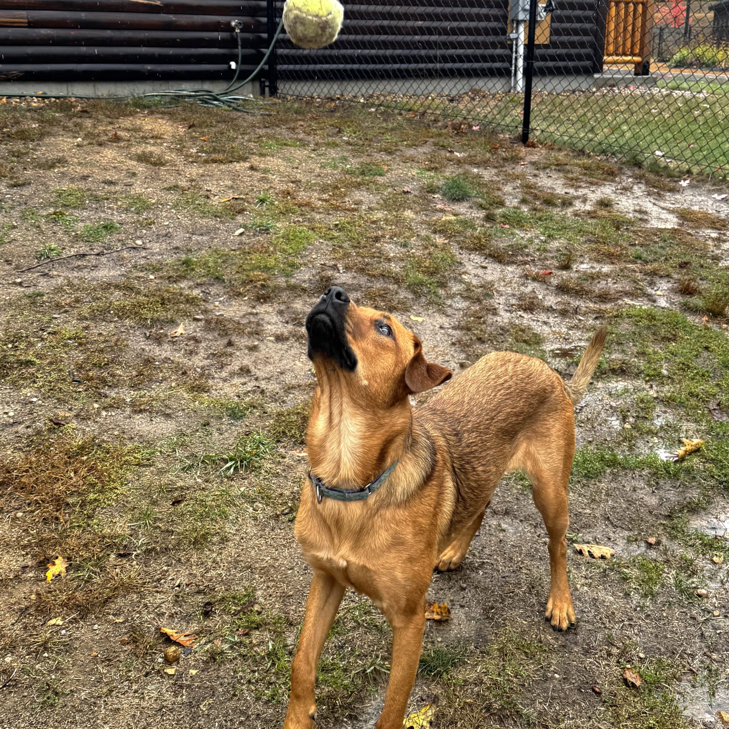Nugget is an energetic dog with a great personality. He is a happy dog that gets along well with other dogs that also like to play. He loves water and will run around the play park with you and other dogs.