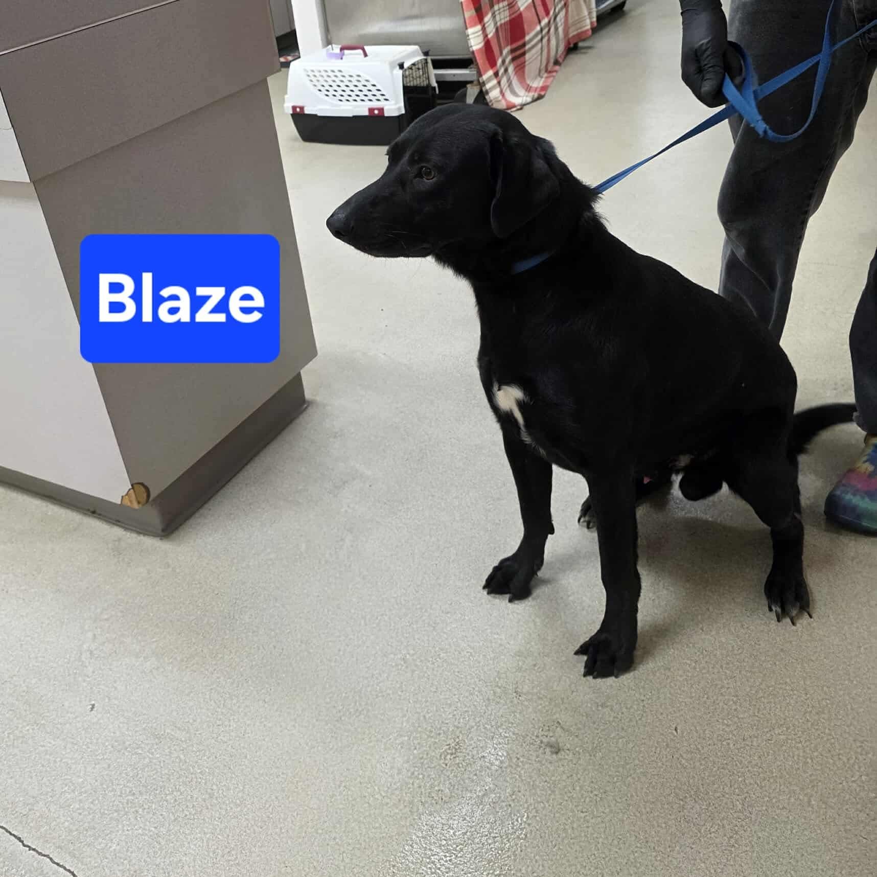 Blaze is a black lab. He is 2 years old and still has some puppy energy in him. He is a sweet dog that gets along well with other dogs and likes to play.