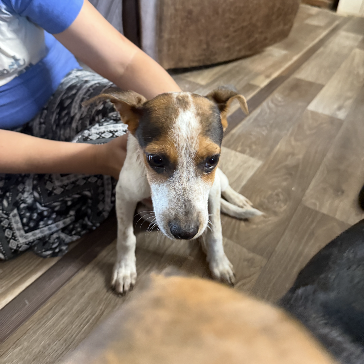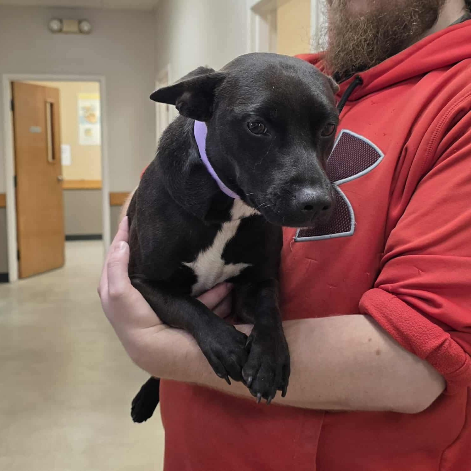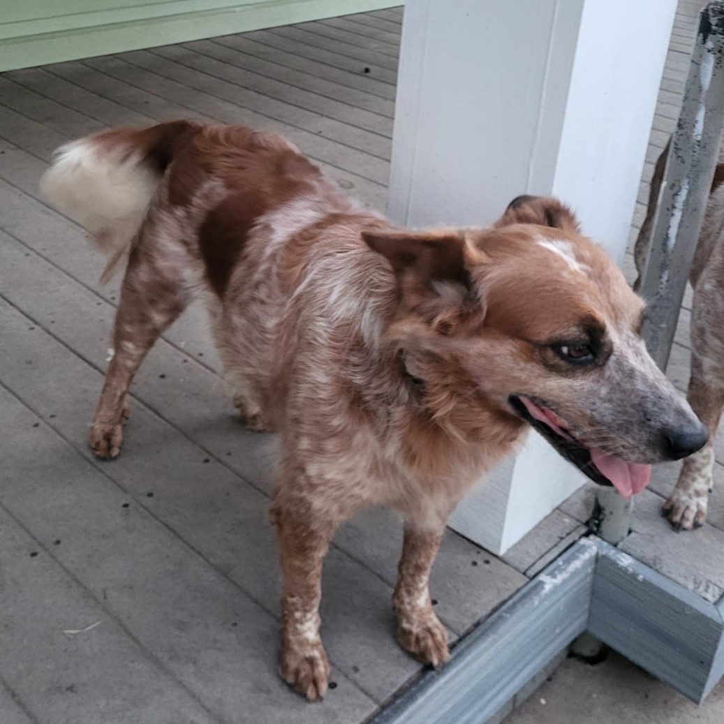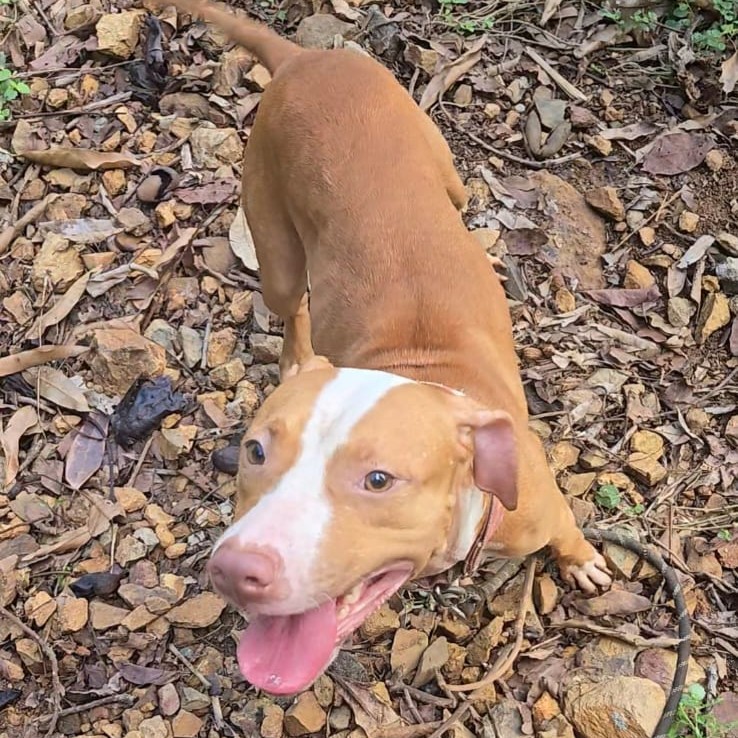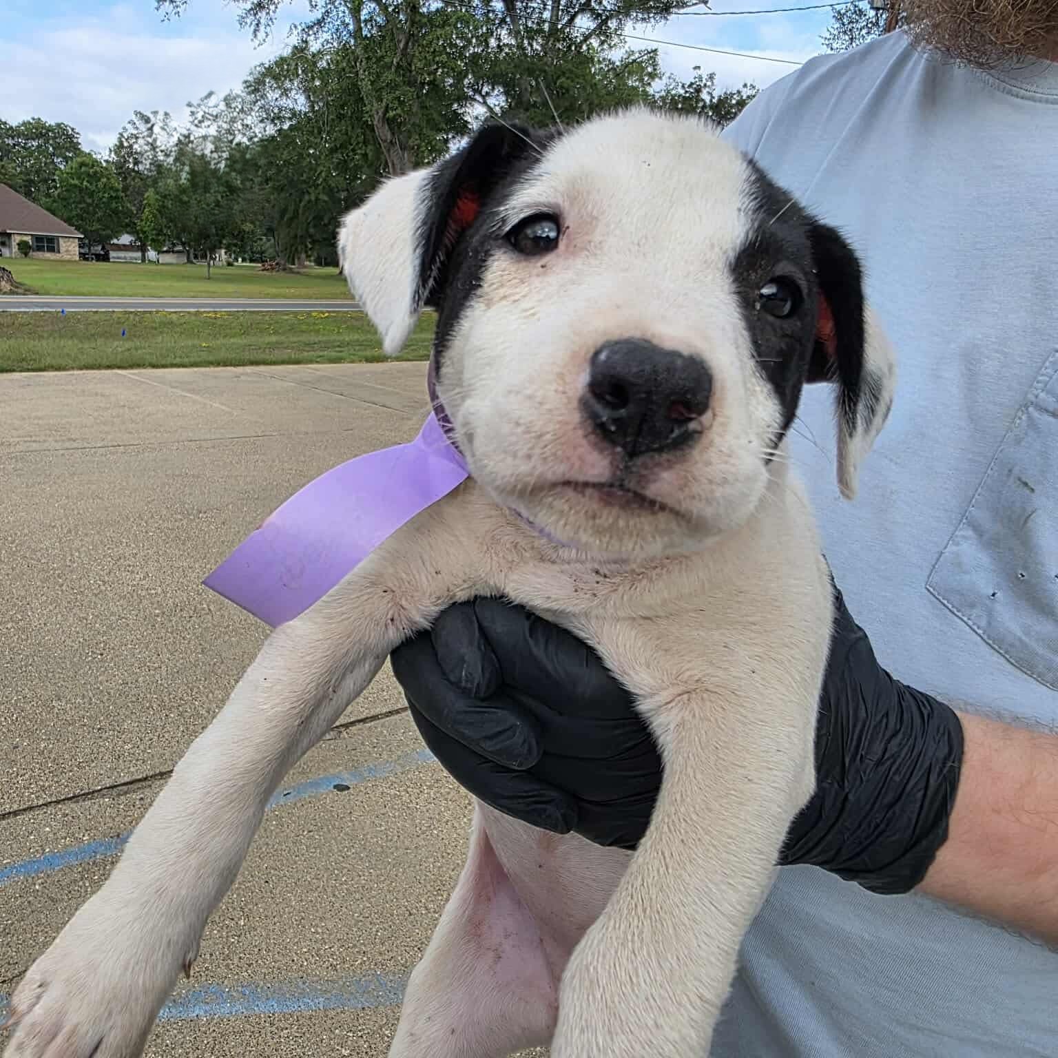 Patches is a sweet girl. She is calm and gets along with other pups. We’ve seen several videos of her going on nice walks with people and other dogs. She is very deserving of a great home where someone will give her the love she needs.