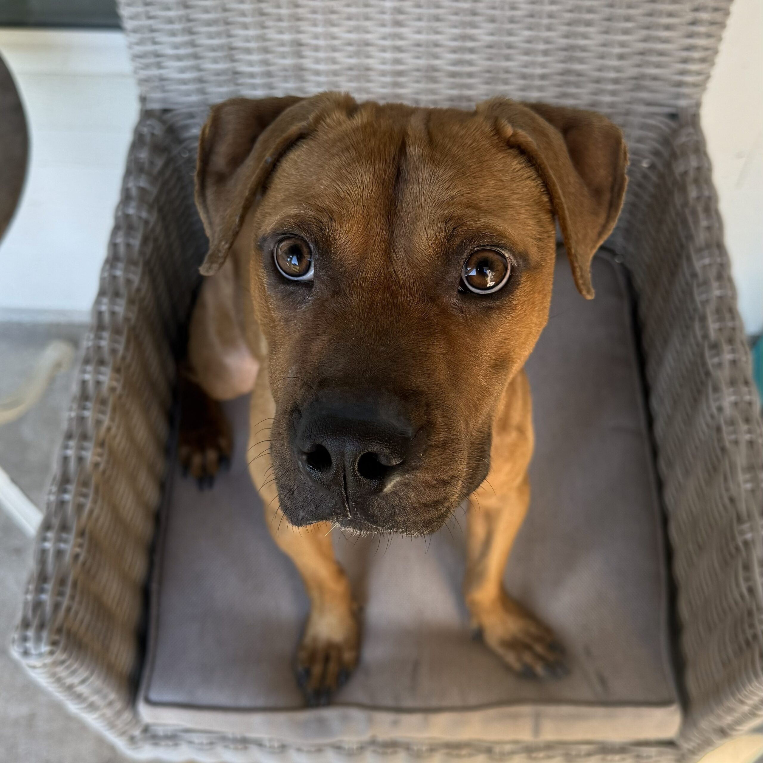 Mufasa is a big boy and still growing! He is a playful, sweet pup that gets along with other dogs.