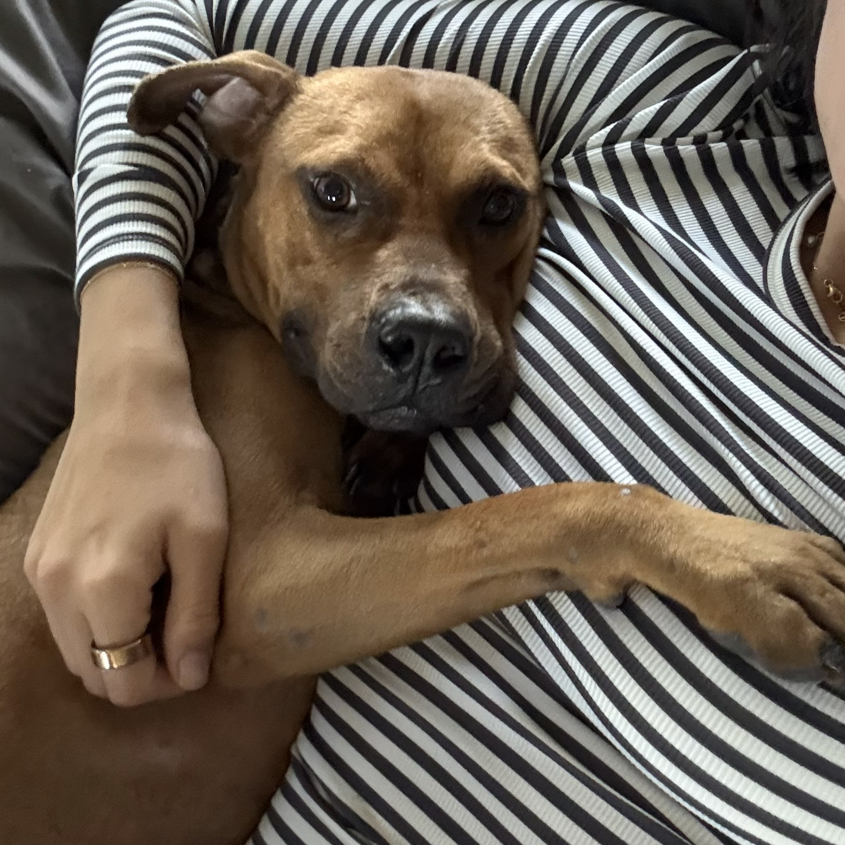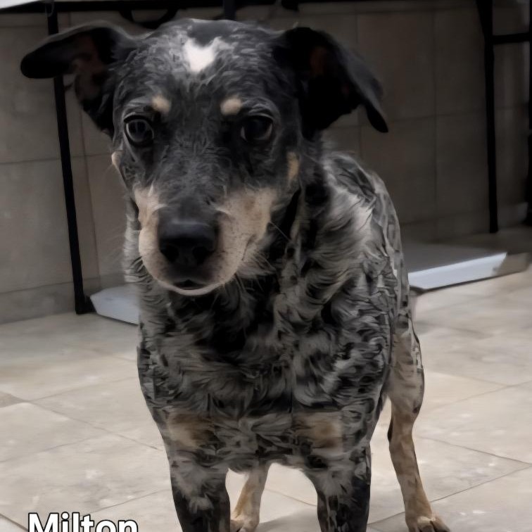 Milton is a Heeler mix. He is low key and likes to lay around and relax. If you’re looking for a friendly, low energy dog, he’s your guy.