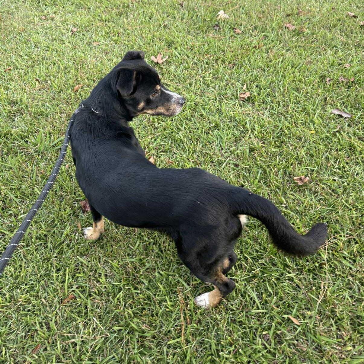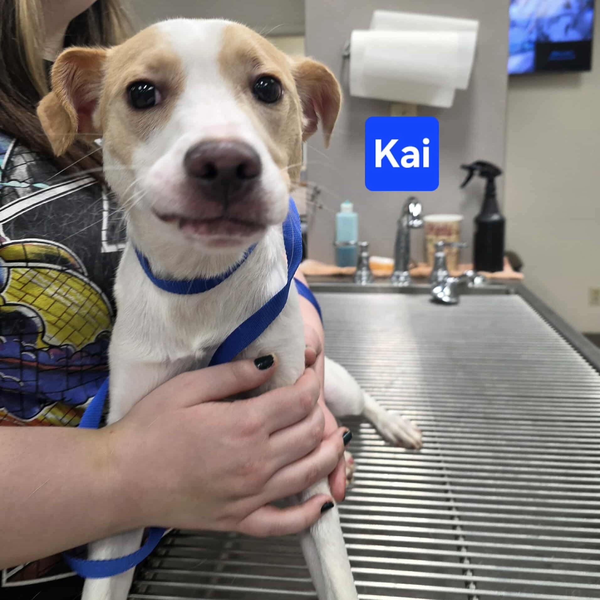 Kai is still growing, but he’s a little guy at only 17 lbs so far. He is playful and gets along with other dogs.