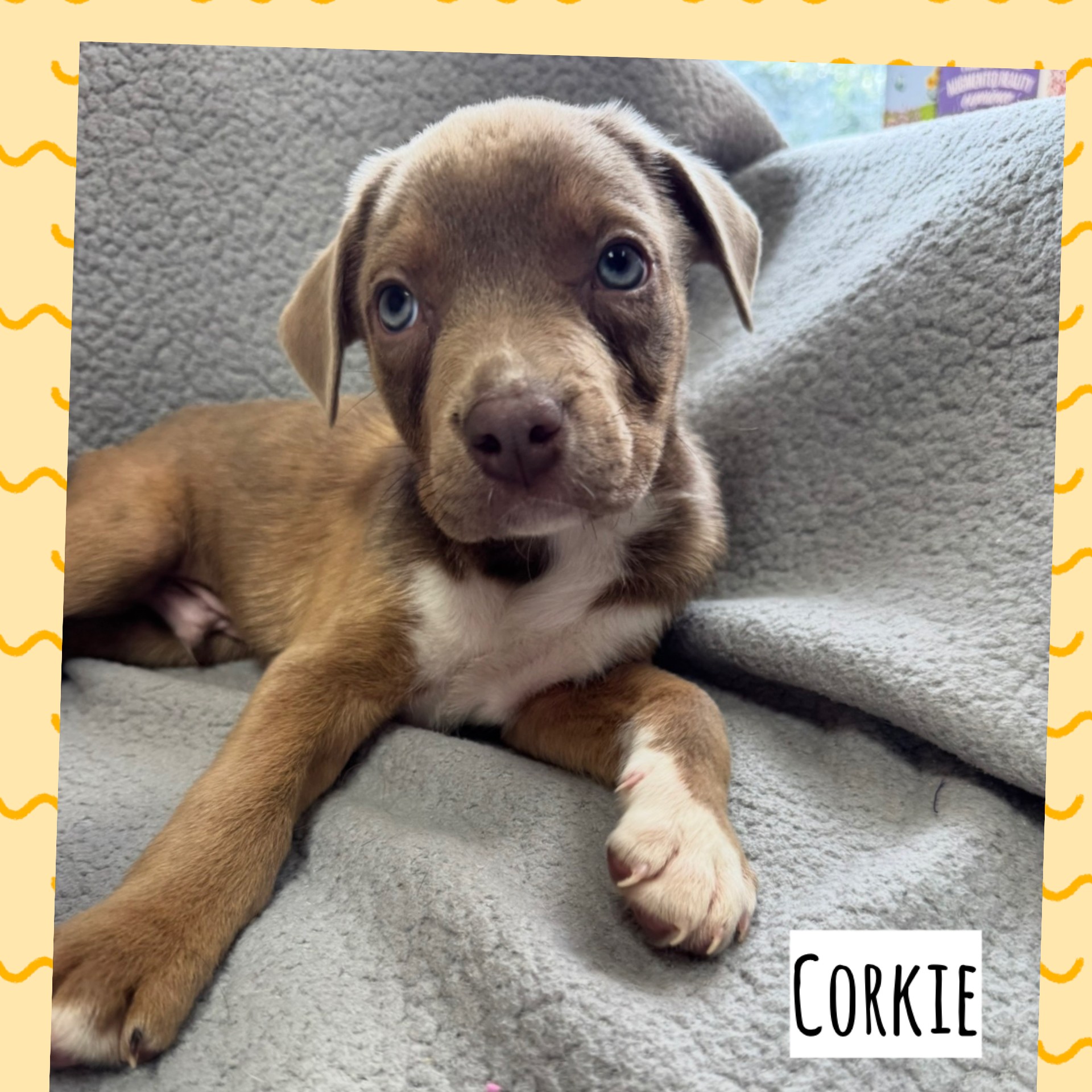Corkie will be joining his 6 siblings in Maine to find their forever homes. Each one has a different personality. Come meet them to see which is the best fit for your family!